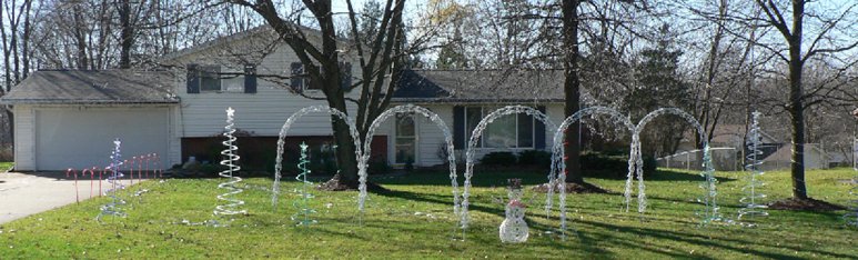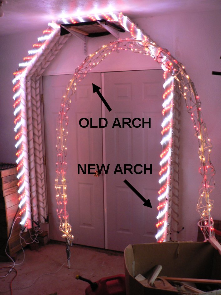 were replaced with home made arches that used PVC and rope lights. Unlike the originals, the red