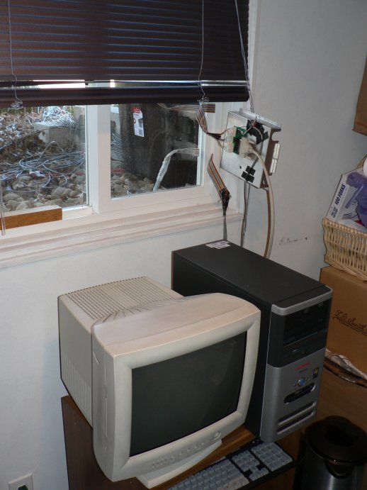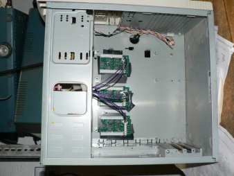 Mounting of relay driver boards in an old computer case.
